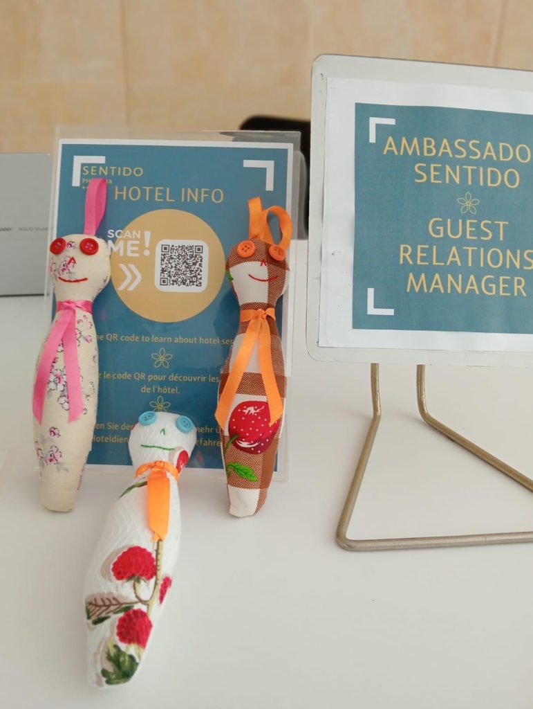 Each Green Buddy is unique. They are handmade from recycled fabrics and buttons and symbolize the idea that sustainability starts with small steps and personal choices. By placing a Green Buddy in the room, guests signal their decision to support the environment and social responsibility. Behind these creations are social organizations that empower women, support people with disabilities, and strengthen local communities.